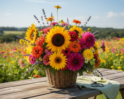 Tournesols, dahlias, zinnias, lavandes…