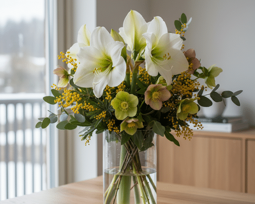 Amaryllis, hellébores, mimosas, eucalyptus…